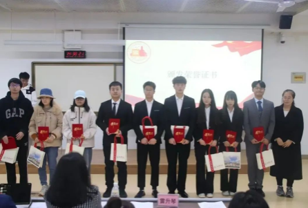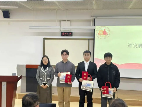 李生策老师宣布第三届研究生会及第十六届学生会成员表彰名单,由雷升琴老师向获奖同学颁发荣誉证书。