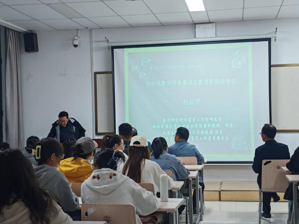 讲座结束后,在场师生针对敦煌历史研究的相关问题与杨富学研究员进行了深入交流。杨研究员鼓励延大学子继续挖掘敦煌历史文化的宝贵价值,期待在敦煌学的研究与传承中做出成绩。
