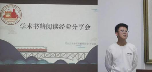 主持人向同学们分别介绍了学术书籍阅读的重要性、如何选择合适的学术书籍、学术书籍阅读技巧和书籍资源推荐,并带领大家进行阅读经验分享和互动。吴凯同学从自己的阅读经历出发,讲述如何挑选适合自己的学术书籍、如何高效地阅读和理解书中的内容、如何记录和总结阅读笔记等方面的心得和体会。互动环节中,同学们积极进行提问,就自己在阅读过程中遇到的问题和困惑寻求解答和建议,以促进自身阅读技能,拓宽学术视野。