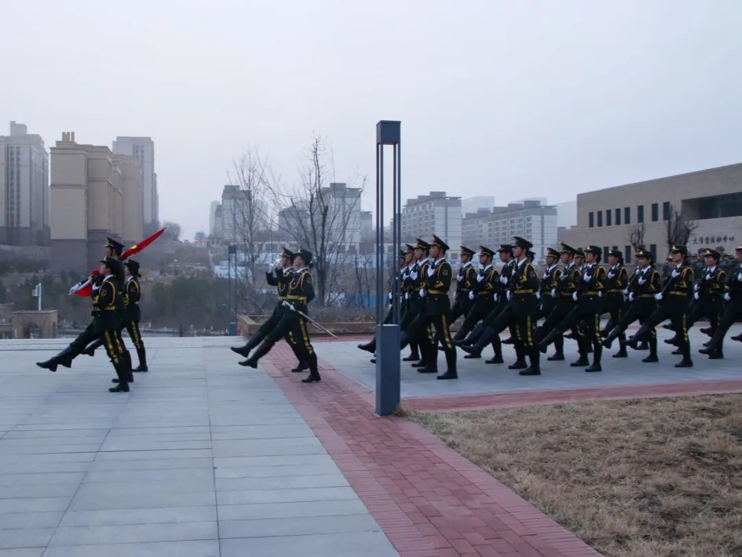 国旗护卫队队员身姿挺拔,迈着沉稳且整齐的步伐,神情肃穆、精神抖擞。他们以飒爽之姿,护卫着那面鲜艳夺目的五星红旗庄严入场,步伐坚定地迈向升旗台。