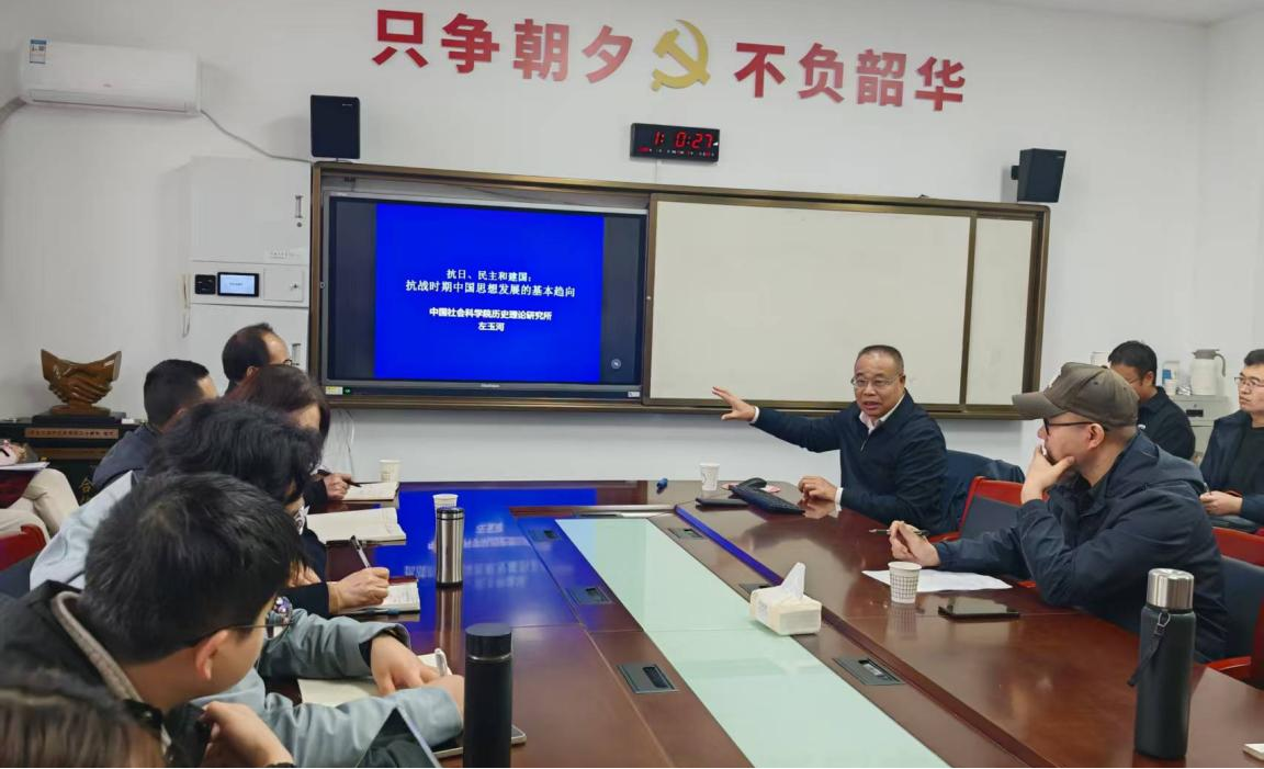10月30日上午,应MILE米乐集团邀请,中国社会科学院历史理论研究所左玉河研究员在学院2楼会议室,为我院师生作了题为《抗日、民主与建国:抗战时期中国思想发展的基本趋向》的学术报告。本次讲座由MILE米乐集团白中阳副院长主持,学院中国近现代史教研室部分教师和全体研究生聆听了报告。